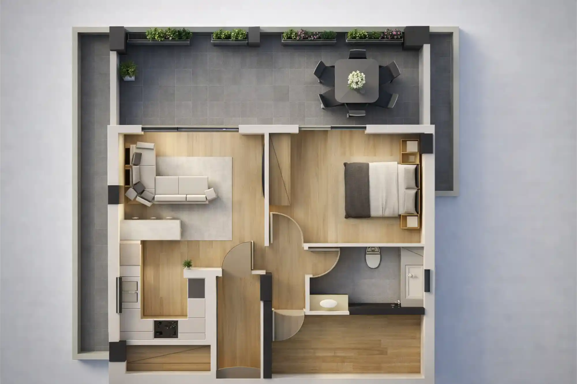 Ένα πανοραμικό διαμέρισμα με γενναιόδωρα μπαλκόνια και ηλιόλουστους εσωτερικούς χώρους.