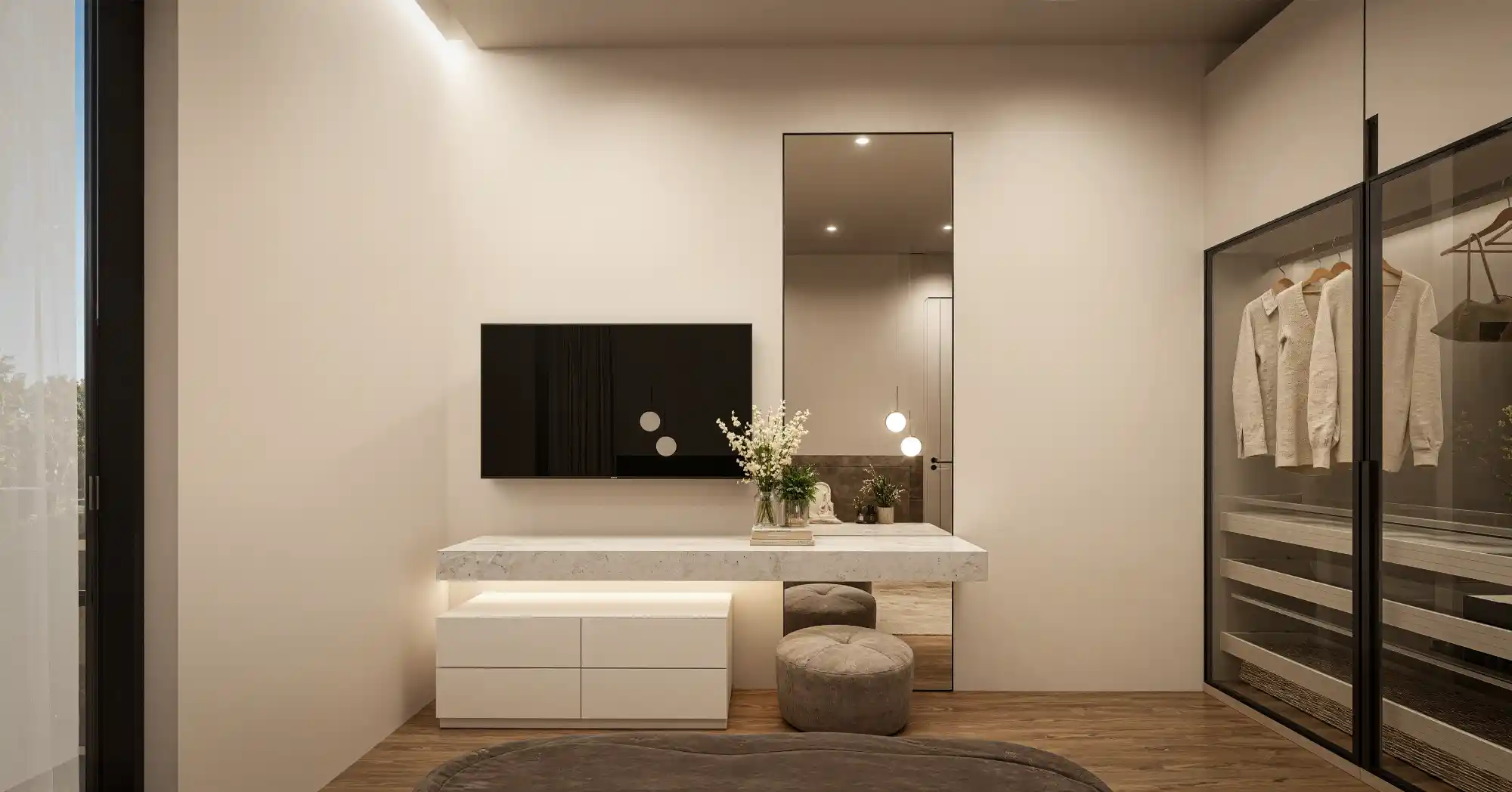 δωμάτιο, με γενναιόδωρο μπαλκόνι και αποδοτική διαρρύθμιση.