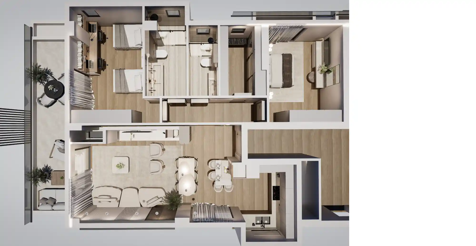 Υψηλού επιπέδου διαβίωση με μεγάλα μπαλκόνια, τρία υπνοδωμάτια και