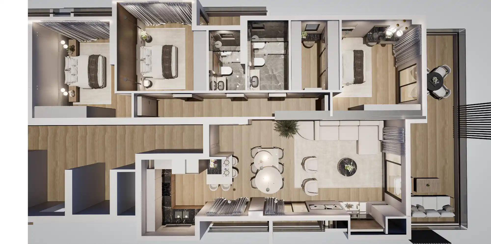 Ένα εκλεπτυσμένο διαμέρισμα με τρία μπαλκόνια και ηλιόλουστους εσωτερικούς χώρους.